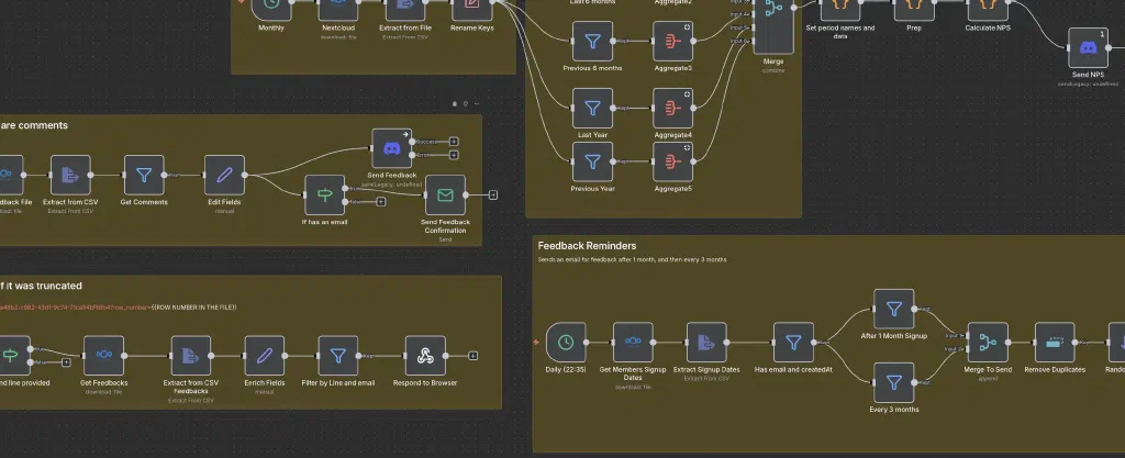 Every month, n8n sends to the steering group the NPS with numbers for the last 3, 6, and 12 months, comparing them with the previous periods. I am happy we implemented this from the very first day. As an LGBTQ+ club, we need to keep it a safe space. When we had issues with members in the club, this system gave us a quantitative measure to how things affected players. The players also found this tool useful to report concerns in a safe and protected way. We are humans after all, we make mistakes and have opinions but numbers are hard to debate.